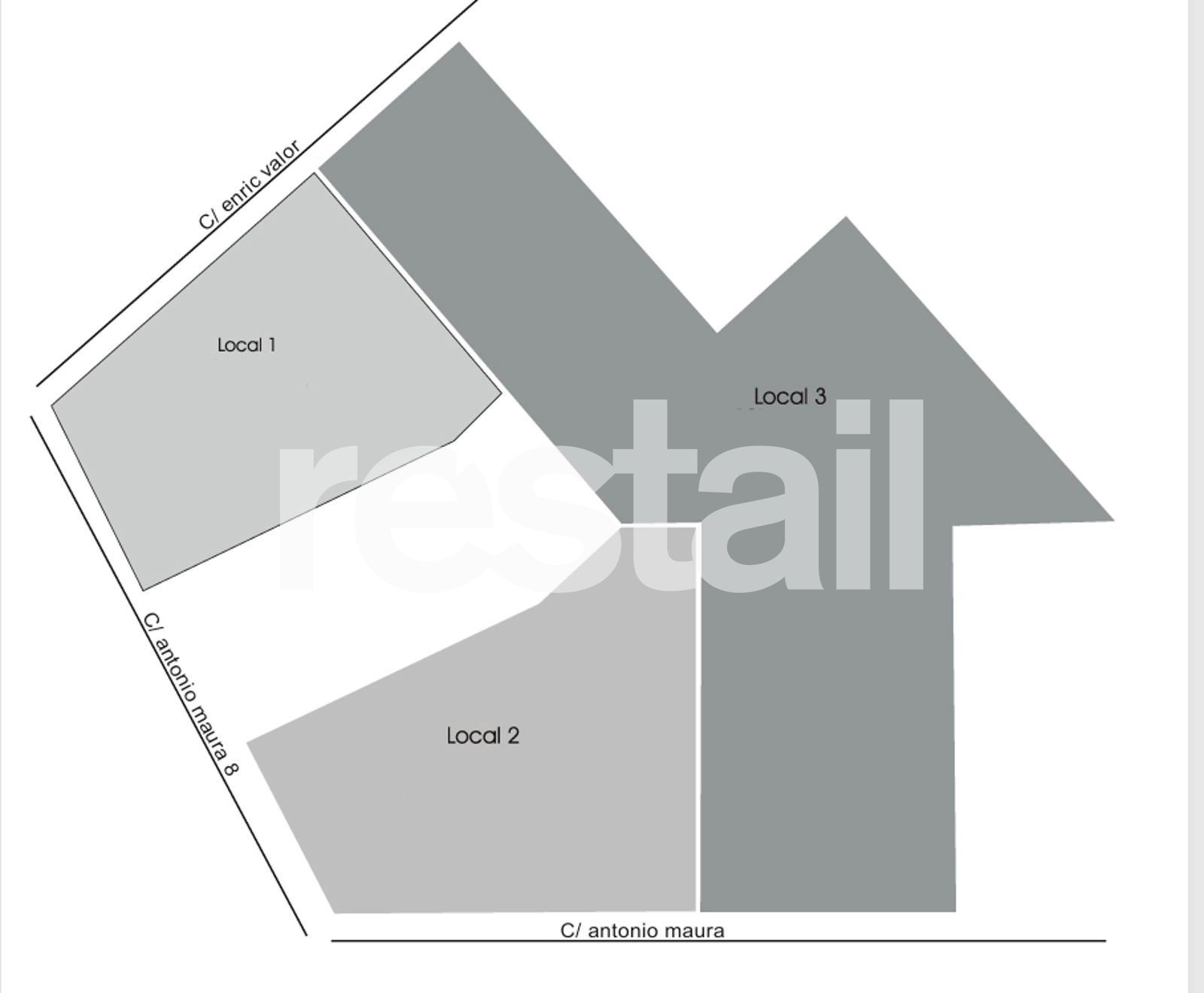 Local esquinero con superficie de 332 m² útiles y una fachada de 37,50 metros lineales.